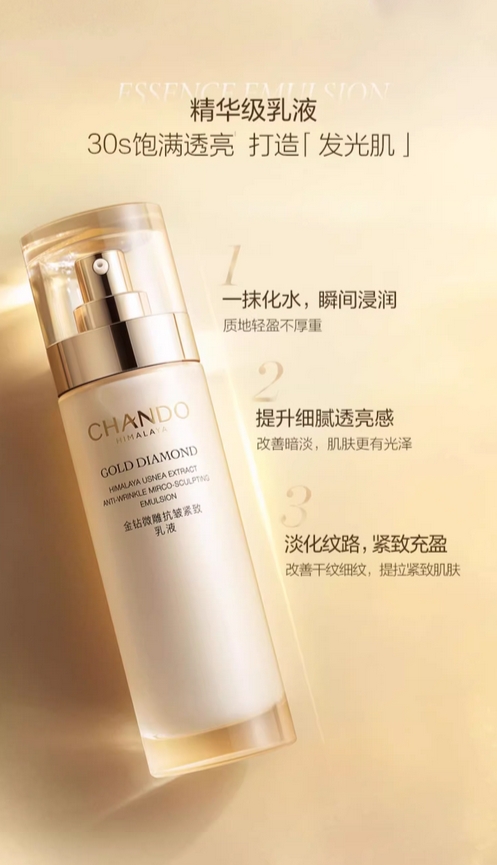 自然堂金钻微雕抗皱紧致乳液饱满透亮28天精致淡纹平滑光泽的描述