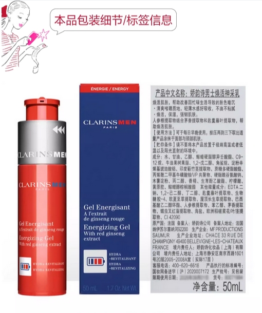 娇韵诗焕活神采乳液保湿滋润补水清爽润肤男士系列的描述