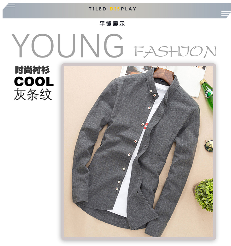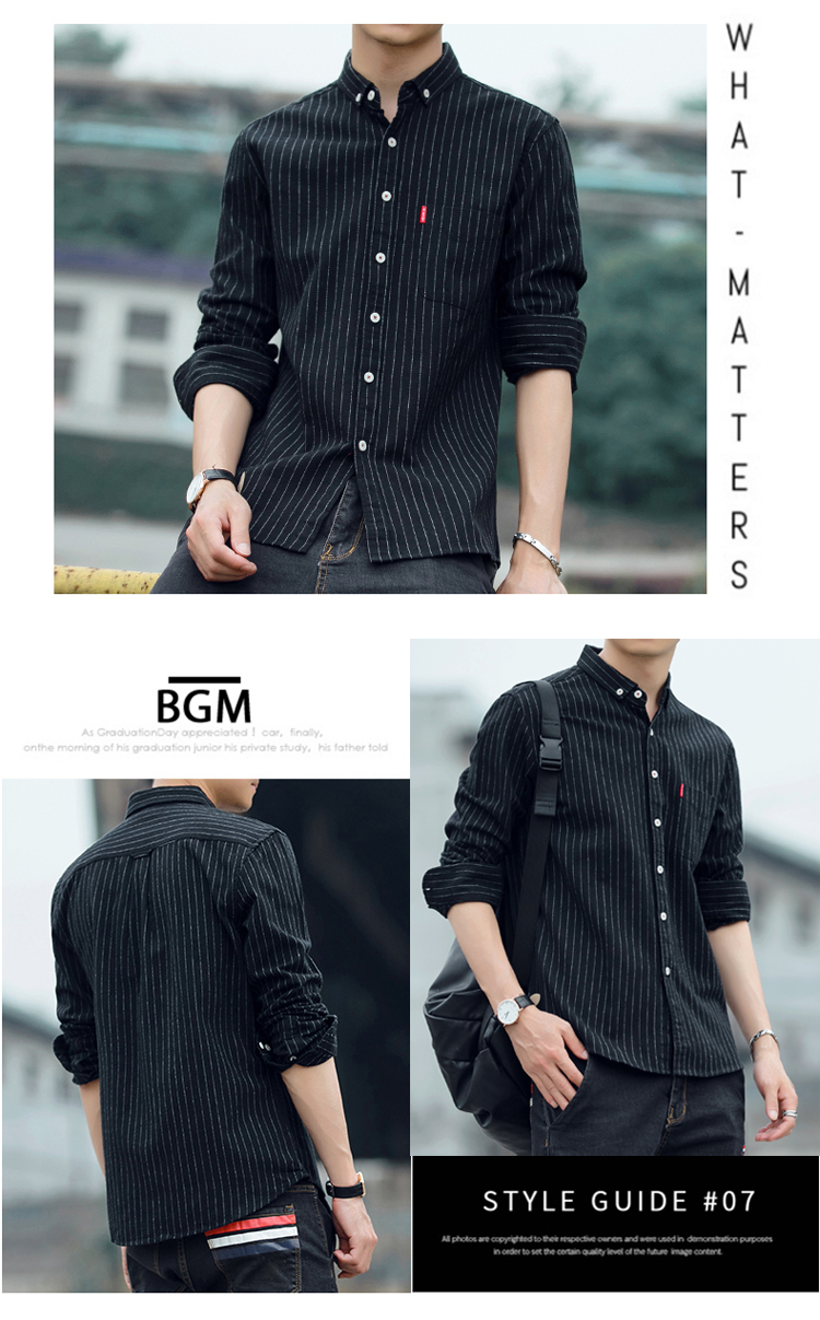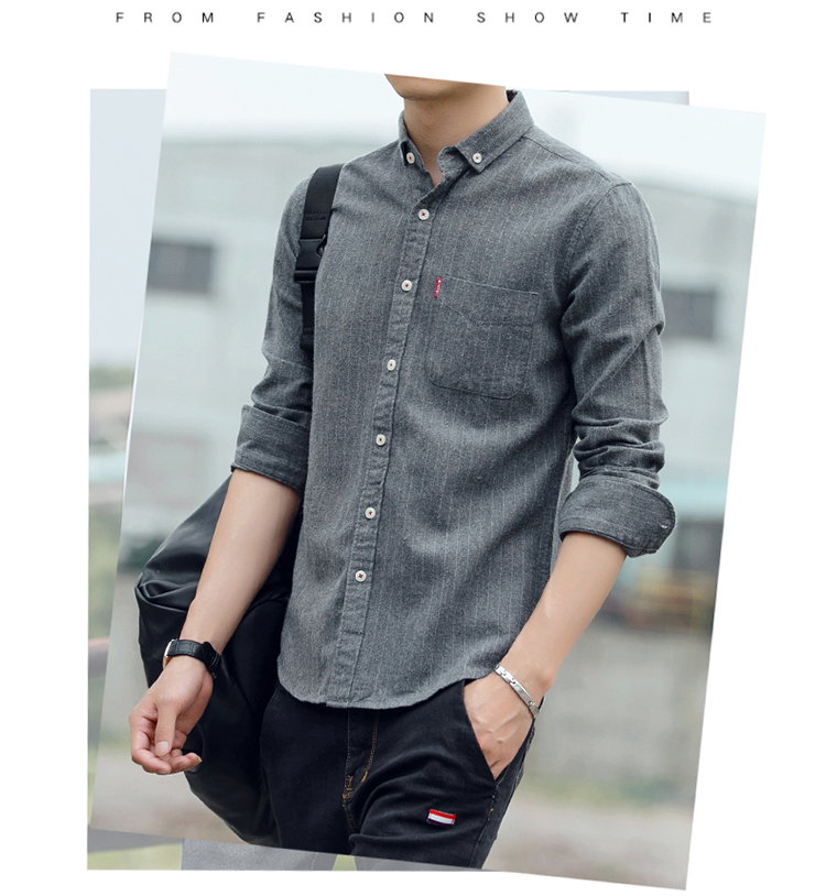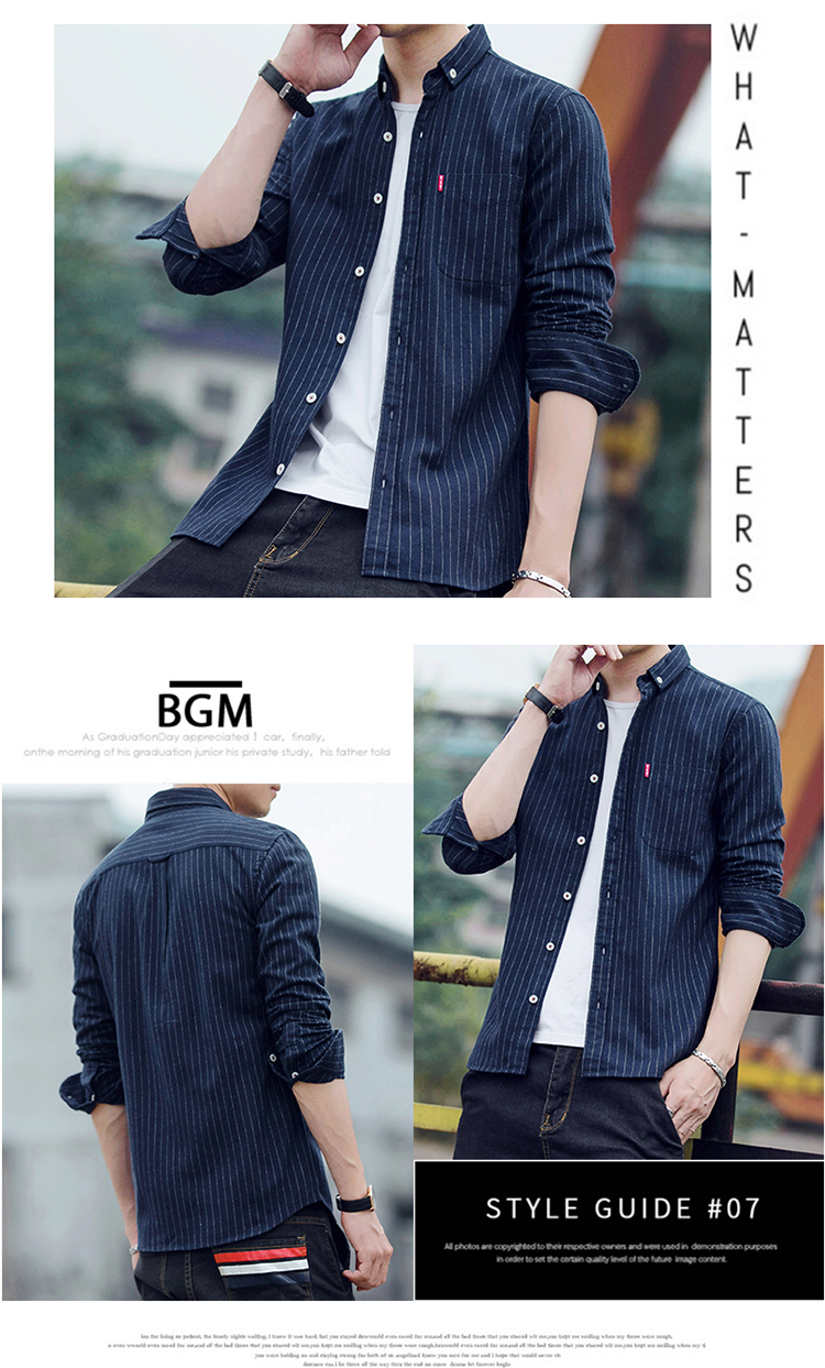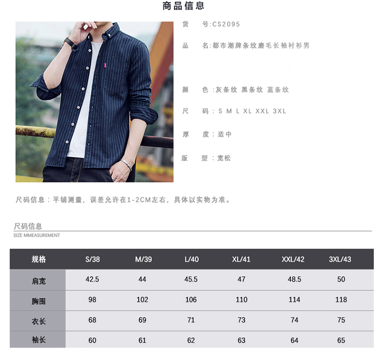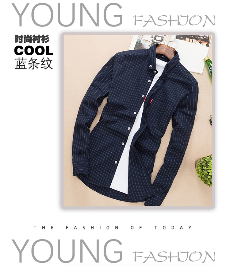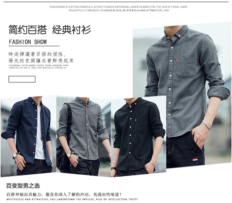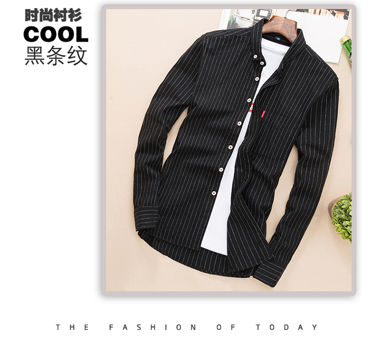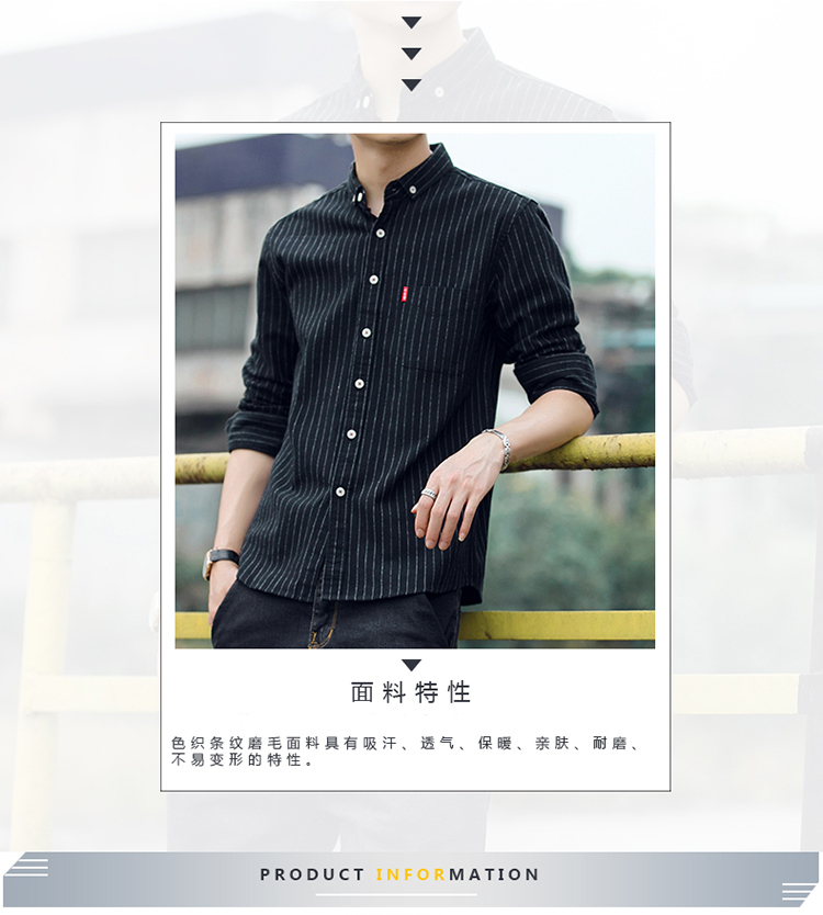 秋季条纹磨毛宽松棉衬衣男士上衣服长袖衬衫大码休闲男装外套潮流的描述