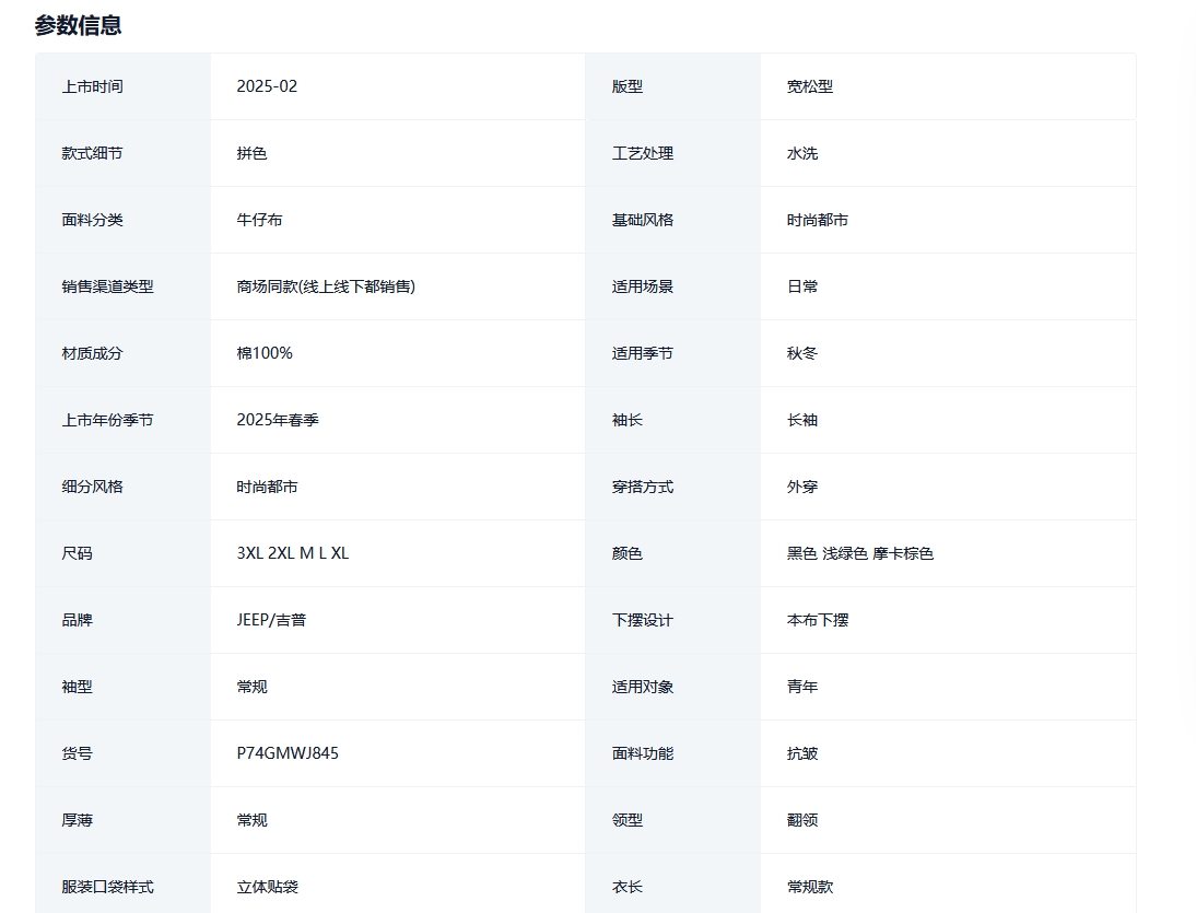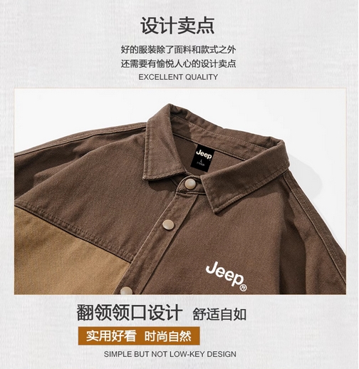 JEEP吉普纯棉牛仔衬衫男士2025新款春秋款拼色衬衣痞帅外套上衣服的描述
